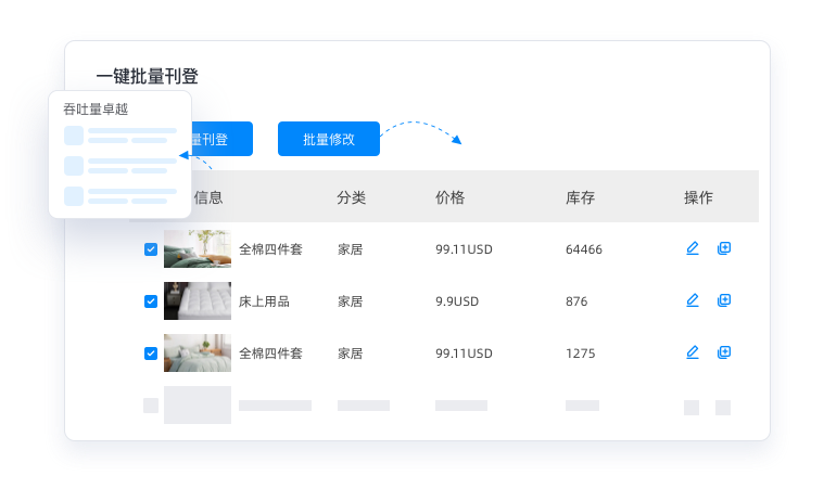吞吐量卓越, 支持一天鋪貨數(shù)十萬、一天上架數(shù)百萬Listing