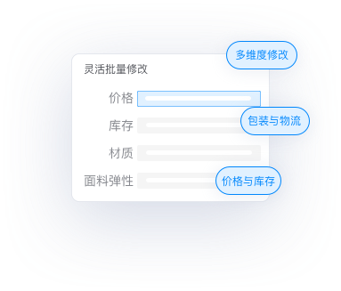 基本信息、價(jià)格與庫存、詳情描述、包裝與物流等各維度數(shù)據(jù),靈活批量修改