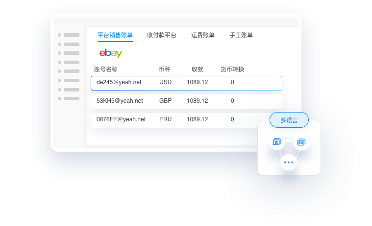 銷售平臺賬單、收付款平臺賬單、運費賬單等,同時支持手工賬單